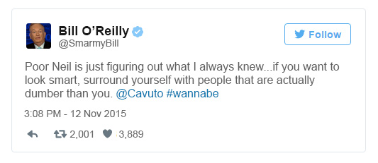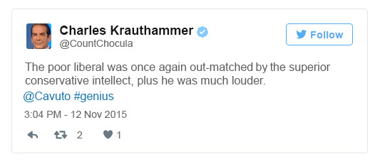 An un-named source claimed Cavuto was strutting around the studio like a peacock after the interview. Republicans around the Twittersphere celebrated Cavuto's remarkable triumph: